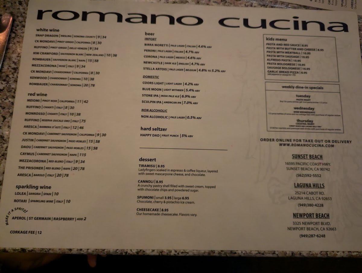 Welcome to Romano Cucina - CA 90742, a delightful gem nestled in Sunset Beach, California. This Italian restaurant offers a menu brimming with classic dishes that evoke the warmth of traditional cuisine.